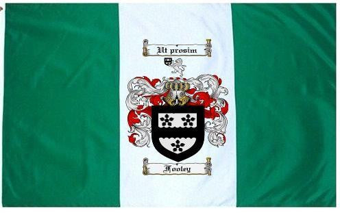 Fooley Family Crest Flag / Coat of Arms Flag. You will receive a high quality 3' x 5' Polyester flag with two brass grommets. Proudly display your family heritage with this flag, or hang as a banner on a wall. Our flags make great gifts for birthdays, weddings, anniversaries, fathers day, mothers day, groomsmen gifts, and any other occasion