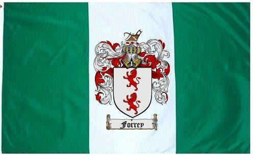 Forrey Family Crest Flag / Coat of Arms Flag. You will receive a high quality 3' x 5' Polyester flag with two brass grommets. Proudly display your family heritage with this flag, or hang as a banner on a wall. Our flags make great gifts for birthdays, weddings, anniversaries, fathers day, mothers day, groomsmen gifts, and any other occasion