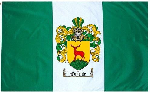 Fournie Family Crest Flag / Coat of Arms Flag. You will receive a high quality 3' x 5' Polyester flag with two brass grommets. Proudly display your family heritage with this flag, or hang as a banner on a wall. Our flags make great gifts for birthdays, weddings, anniversaries, fathers day, mothers day, groomsmen gifts, and any other occasion
