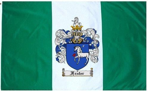 Frater Family Crest Flag / Coat of Arms Flag. You will receive a high quality 3' x 5' Polyester flag with two brass grommets. Proudly display your family heritage with this flag, or hang as a banner on a wall. Our flags make great gifts for birthdays, weddings, anniversaries, fathers day, mothers day, groomsmen gifts, and any other occasion