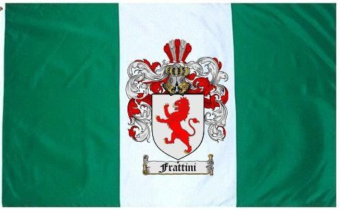 Frattini Family Crest Flag / Coat of Arms Flag. You will receive a high quality 3' x 5' Polyester flag with two brass grommets. Proudly display your family heritage with this flag, or hang as a banner on a wall. Our flags make great gifts for birthdays, weddings, anniversaries, fathers day, mothers day, groomsmen gifts, and any other occasion