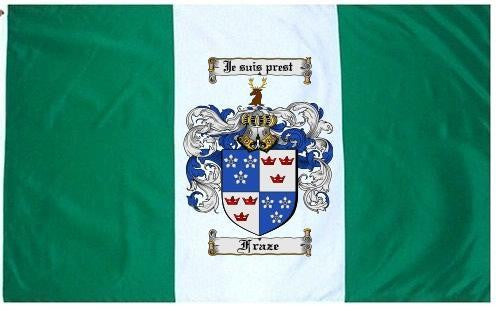 Fraze Family Crest Flag / Coat of Arms Flag. You will receive a high quality 3' x 5' Polyester flag with two brass grommets. Proudly display your family heritage with this flag, or hang as a banner on a wall. Our flags make great gifts for birthdays, weddings, anniversaries, fathers day, mothers day, groomsmen gifts, and any other occasion