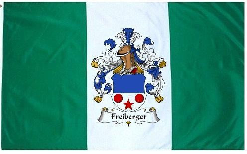 Freiberger Family Crest Flag / Coat of Arms Flag. You will receive a high quality 3' x 5' Polyester flag with two brass grommets. Proudly display your family heritage with this flag, or hang as a banner on a wall. Our flags make great gifts for birthdays, weddings, anniversaries, fathers day, mothers day, groomsmen gifts, and any other occasion