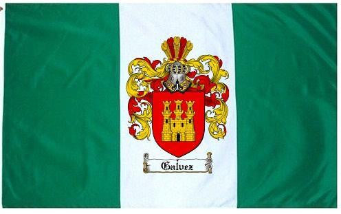 Galvez Family Crest Flag / Coat of Arms Flag. You will receive a high quality 3' x 5' Polyester flag with two brass grommets. Proudly display your family heritage with this flag, or hang as a banner on a wall. Our flags make great gifts for birthdays, weddings, anniversaries, fathers day, mothers day, groomsmen gifts, and any other occasion