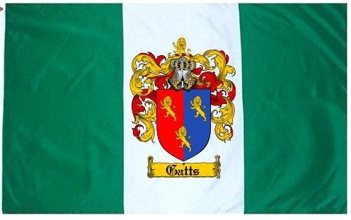 Gatts Family Crest Flag / Coat of Arms Flag. You will receive a high quality 3' x 5' Polyester flag with two brass grommets. Proudly display your family heritage with this flag, or hang as a banner on a wall. Our flags make great gifts for birthdays, weddings, anniversaries, fathers day, mothers day, groomsmen gifts, and any other occasion