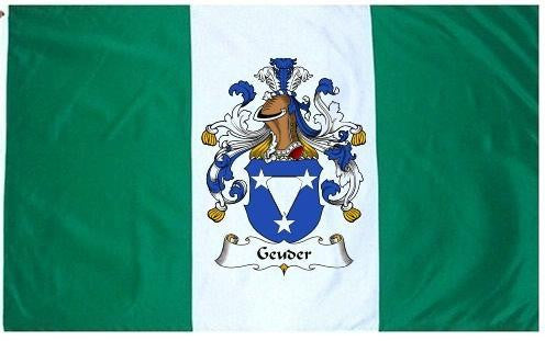 Geuder Family Crest Flag / Coat of Arms Flag. You will receive a high quality 3' x 5' Polyester flag with two brass grommets. Proudly display your family heritage with this flag, or hang as a banner on a wall. Our flags make great gifts for birthdays, weddings, anniversaries, fathers day, mothers day, groomsmen gifts, and any other occasion