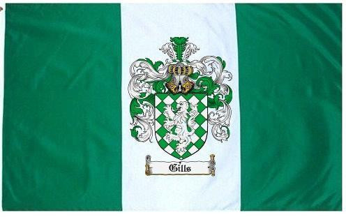 Gills Family Crest Flag / Coat of Arms Flag. You will receive a high quality 3' x 5' Polyester flag with two brass grommets. Proudly display your family heritage with this flag, or hang as a banner on a wall. Our flags make great gifts for birthdays, weddings, anniversaries, fathers day, mothers day, groomsmen gifts, and any other occasion