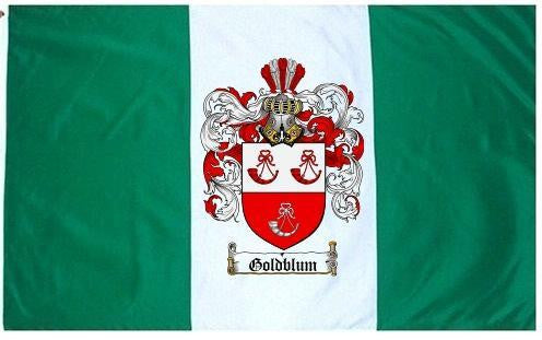 Goldblum Family Crest Flag / Coat of Arms Flag. You will receive a high quality 3' x 5' Polyester flag with two brass grommets. Proudly display your family heritage with this flag, or hang as a banner on a wall. Our flags make great gifts for birthdays, weddings, anniversaries, fathers day, mothers day, groomsmen gifts, and any other occasion