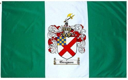 Gregson Family Crest Flag / Coat of Arms Flag. You will receive a high quality 3' x 5' Polyester flag with two brass grommets. Proudly display your family heritage with this flag, or hang as a banner on a wall. Our flags make great gifts for birthdays, weddings, anniversaries, fathers day, mothers day, groomsmen gifts, and any other occasion