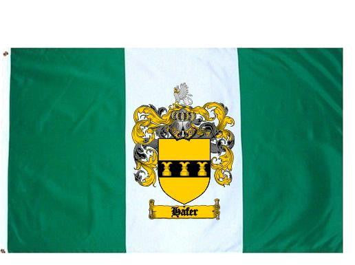 Hafer Family Crest Flag / Coat of Arms Flag. You will receive a high quality 3' x 5' Polyester flag with two brass grommets. Proudly display your family heritage with this flag, or hang as a banner on a wall. Our flags make great gifts for birthdays, weddings, anniversaries, fathers day, mothers day, groomsmen gifts, and any other occasion