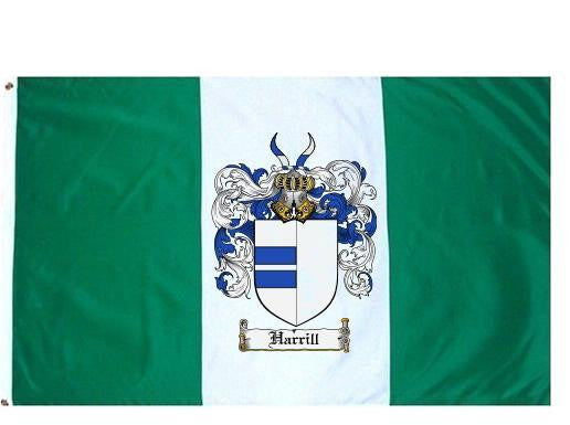 Harrill Family Crest Flag / Coat of Arms Flag. You will receive a high quality 3' x 5' Polyester flag with two brass grommets. Proudly display your family heritage with this flag, or hang as a banner on a wall. Our flags make great gifts for birthdays, weddings, anniversaries, fathers day, mothers day, groomsmen gifts, and any other occasion