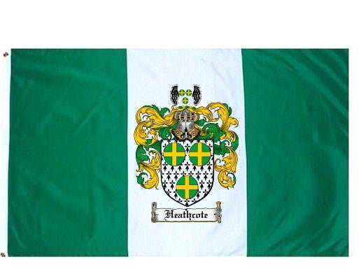 Heathcote Family Crest Flag / Coat of Arms Flag. You will receive a high quality 3' x 5' Polyester flag with two brass grommets. Proudly display your family heritage with this flag, or hang as a banner on a wall. Our flags make great gifts for birthdays, weddings, anniversaries, fathers day, mothers day, groomsmen gifts, and any other occasion