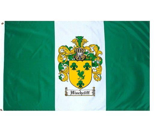 Hinchcliff Family Crest Flag / Coat of Arms Flag. You will receive a high quality 3' x 5' Polyester flag with two brass grommets. Proudly display your family heritage with this flag, or hang as a banner on a wall. Our flags make great gifts for birthdays, weddings, anniversaries, fathers day, mothers day, groomsmen gifts, and any other occasion