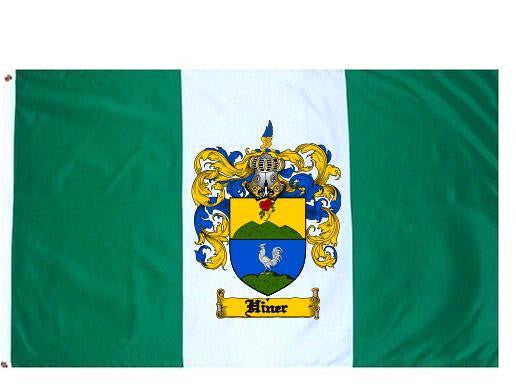Hiner Family Crest Flag / Coat of Arms Flag. You will receive a high quality 3' x 5' Polyester flag with two brass grommets. Proudly display your family heritage with this flag, or hang as a banner on a wall. Our flags make great gifts for birthdays, weddings, anniversaries, fathers day, mothers day, groomsmen gifts, and any other occasion