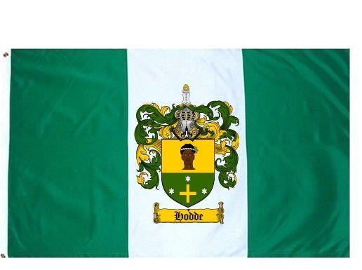 Hodde Family Crest Flag / Coat of Arms Flag. You will receive a high quality 3' x 5' Polyester flag with two brass grommets. Proudly display your family heritage with this flag, or hang as a banner on a wall. Our flags make great gifts for birthdays, weddings, anniversaries, fathers day, mothers day, groomsmen gifts, and any other occasion
