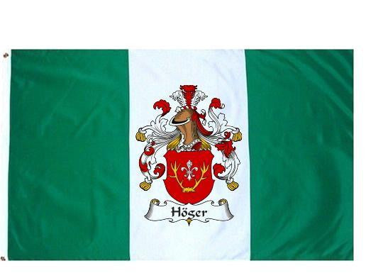 Hoger Family Crest Flag / Coat of Arms Flag. You will receive a high quality 3' x 5' Polyester flag with two brass grommets. Proudly display your family heritage with this flag, or hang as a banner on a wall. Our flags make great gifts for birthdays, weddings, anniversaries, fathers day, mothers day, groomsmen gifts, and any other occasion