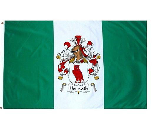 Horwath Family Crest Flag / Coat of Arms Flag. You will receive a high quality 3' x 5' Polyester flag with two brass grommets. Proudly display your family heritage with this flag, or hang as a banner on a wall. Our flags make great gifts for birthdays, weddings, anniversaries, fathers day, mothers day, groomsmen gifts, and any other occasion