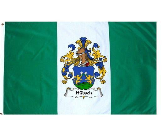Hubsch Family Crest Flag / Coat of Arms Flag. You will receive a high quality 3' x 5' Polyester flag with two brass grommets. Proudly display your family heritage with this flag, or hang as a banner on a wall. Our flags make great gifts for birthdays, weddings, anniversaries, fathers day, mothers day, groomsmen gifts, and any other occasion