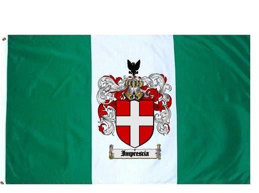 Imprescia Family Crest Flag / Coat of Arms Flag. You will receive a high quality 3' x 5' Polyester flag with two brass grommets. Proudly display your family heritage with this flag, or hang as a banner on a wall. Our flags make great gifts for birthdays, weddings, anniversaries, fathers day, mothers day, groomsmen gifts, and any other occasion