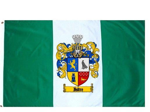 Istre Family Crest Flag / Coat of Arms Flag. You will receive a high quality 3' x 5' Polyester flag with two brass grommets. Proudly display your family heritage with this flag, or hang as a banner on a wall. Our flags make great gifts for birthdays, weddings, anniversaries, fathers day, mothers day, groomsmen gifts, and any other occasion
