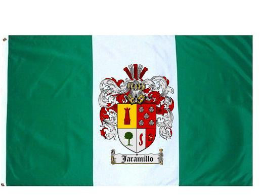 Jaramillo Family Crest Flag / Coat of Arms Flag. You will receive a high quality 3' x 5' Polyester flag with two brass grommets. Proudly display your family heritage with this flag, or hang as a banner on a wall. Our flags make great gifts for birthdays, weddings, anniversaries, fathers day, mothers day, groomsmen gifts, and any other occasion
