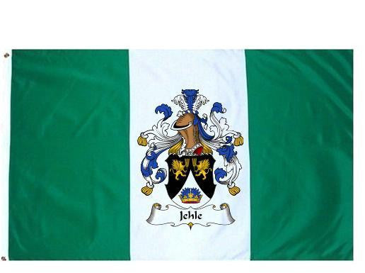 Jehle Family Crest Flag / Coat of Arms Flag. You will receive a high quality 3' x 5' Polyester flag with two brass grommets. Proudly display your family heritage with this flag, or hang as a banner on a wall. Our flags make great gifts for birthdays, weddings, anniversaries, fathers day, mothers day, groomsmen gifts, and any other occasion