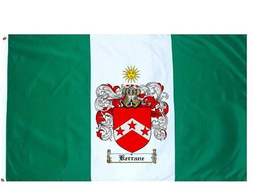 Kerrane Family Crest Flag / Coat of Arms Flag. You will receive a high quality 3' x 5' Polyester flag with two brass grommets. Proudly display your family heritage with this flag, or hang as a banner on a wall. Our flags make great gifts for birthdays, weddings, anniversaries, fathers day, mothers day, groomsmen gifts, and any other occasion