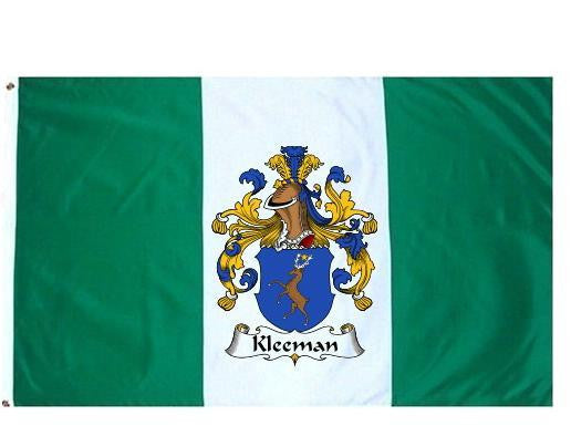 Kleeman Family Crest Flag / Coat of Arms Flag. You will receive a high quality 3' x 5' Polyester flag with two brass grommets. Proudly display your family heritage with this flag, or hang as a banner on a wall. Our flags make great gifts for birthdays, weddings, anniversaries, fathers day, mothers day, groomsmen gifts, and any other occasion