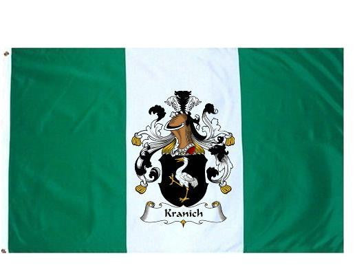 Kranich Family Crest Flag / Coat of Arms Flag. You will receive a high quality 3' x 5' Polyester flag with two brass grommets. Proudly display your family heritage with this flag, or hang as a banner on a wall. Our flags make great gifts for birthdays, weddings, anniversaries, fathers day, mothers day, groomsmen gifts, and any other occasion