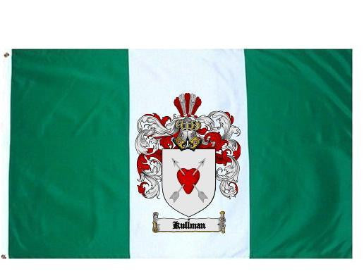 Kullman Family Crest Flag / Coat of Arms Flag. You will receive a high quality 3' x 5' Polyester flag with two brass grommets. Proudly display your family heritage with this flag, or hang as a banner on a wall. Our flags make great gifts for birthdays, weddings, anniversaries, fathers day, mothers day, groomsmen gifts, and any other occasion