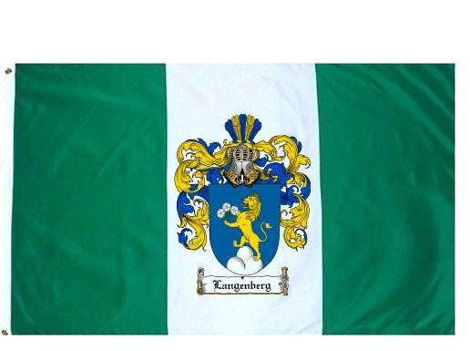 Langenberg Family Crest Flag / Coat of Arms Flag. You will receive a high quality 3' x 5' Polyester flag with two brass grommets. Proudly display your family heritage with this flag, or hang as a banner on a wall. Our flags make great gifts for birthdays, weddings, anniversaries, fathers day, mothers day, groomsmen gifts, and any other occasion
