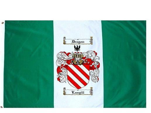 Langill Family Crest Flag / Coat of Arms Flag. You will receive a high quality 3' x 5' Polyester flag with two brass grommets. Proudly display your family heritage with this flag, or hang as a banner on a wall. Our flags make great gifts for birthdays, weddings, anniversaries, fathers day, mothers day, groomsmen gifts, and any other occasion