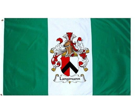 Langmann Family Crest Flag / Coat of Arms Flag. You will receive a high quality 3' x 5' Polyester flag with two brass grommets. Proudly display your family heritage with this flag, or hang as a banner on a wall. Our flags make great gifts for birthdays, weddings, anniversaries, fathers day, mothers day, groomsmen gifts, and any other occasion