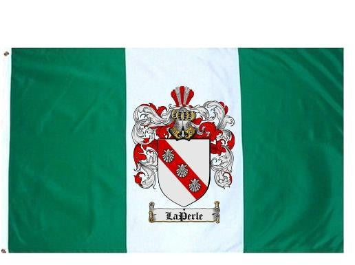 Laperle Family Crest Flag / Coat of Arms Flag. You will receive a high quality 3' x 5' Polyester flag with two brass grommets. Proudly display your family heritage with this flag, or hang as a banner on a wall. Our flags make great gifts for birthdays, weddings, anniversaries, fathers day, mothers day, groomsmen gifts, and any other occasion