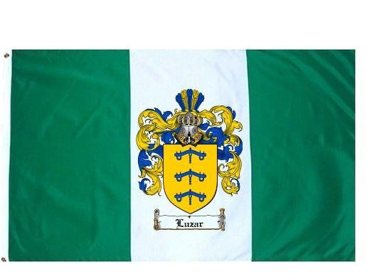 Luzar Family Crest Flag / Coat of Arms Flag. You will receive a high quality 3' x 5' Polyester flag with two brass grommets. Proudly display your family heritage with this flag, or hang as a banner on a wall. Our flags make great gifts for birthdays, weddings, anniversaries, fathers day, mothers day, groomsmen gifts, and any other occasion