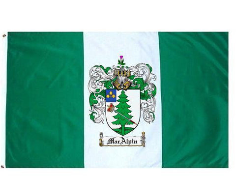 Macalpin Family Crest Flag / Coat of Arms Flag. You will receive a high quality 3' x 5' Polyester flag with two brass grommets. Proudly display your family heritage with this flag, or hang as a banner on a wall. Our flags make great gifts for birthdays, weddings, anniversaries, fathers day, mothers day, groomsmen gifts, and any other occasion