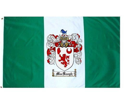Mackeogh Family Crest Flag / Coat of Arms Flag. You will receive a high quality 3' x 5' Polyester flag with two brass grommets. Proudly display your family heritage with this flag, or hang as a banner on a wall. Our flags make great gifts for birthdays, weddings, anniversaries, fathers day, mothers day, groomsmen gifts, and any other occasion