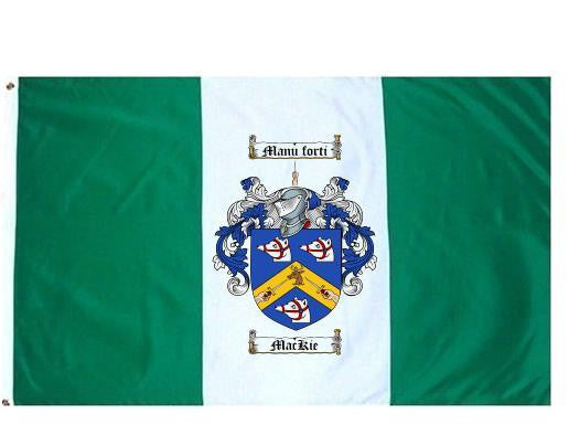 Mackie Family Crest Flag / Coat of Arms Flag. You will receive a high quality 3' x 5' Polyester flag with two brass grommets. Proudly display your family heritage with this flag, or hang as a banner on a wall. Our flags make great gifts for birthdays, weddings, anniversaries, fathers day, mothers day, groomsmen gifts, and any other occasion