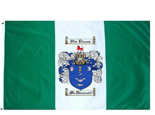 Mcdannald Family Crest Flag / Coat of Arms Flag. You will receive a high quality 3' x 5' Polyester flag with two brass grommets. Proudly display your family heritage with this flag, or hang as a banner on a wall. Our flags make great gifts for birthdays, weddings, anniversaries, fathers day, mothers day, groomsmen gifts, and any other occasion