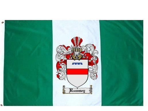 Rumsey Family Crest Flag / Coat of Arms Flag. You will receive a high quality 3' x 5' Polyester flag with two brass grommets. Proudly display your family heritage with this flag, or hang as a banner on a wall. Our flags make great gifts for birthdays, weddings, anniversaries, fathers day, mothers day, groomsmen gifts, and any other occasion
