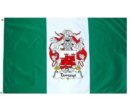 Tamayo Family Crest Flag / Coat of Arms Flag. You will receive a high quality 3' x 5' Polyester flag with two brass grommets. Proudly display your family heritage with this flag, or hang as a banner on a wall. Our flags make great gifts for birthdays, weddings, anniversaries, fathers day, mothers day, groomsmen gifts, and any other occasion