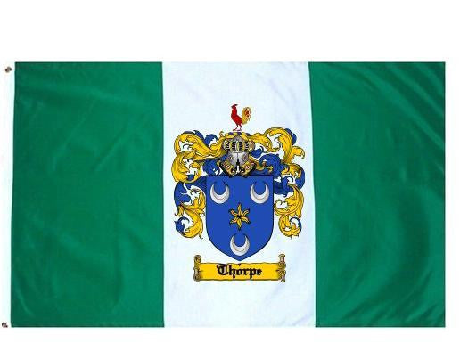 Thorpe Family Crest Flag / Coat of Arms Flag. You will receive a high quality 3' x 5' Polyester flag with two brass grommets. Proudly display your family heritage with this flag, or hang as a banner on a wall. Our flags make great gifts for birthdays, weddings, anniversaries, fathers day, mothers day, groomsmen gifts, and any other occasion